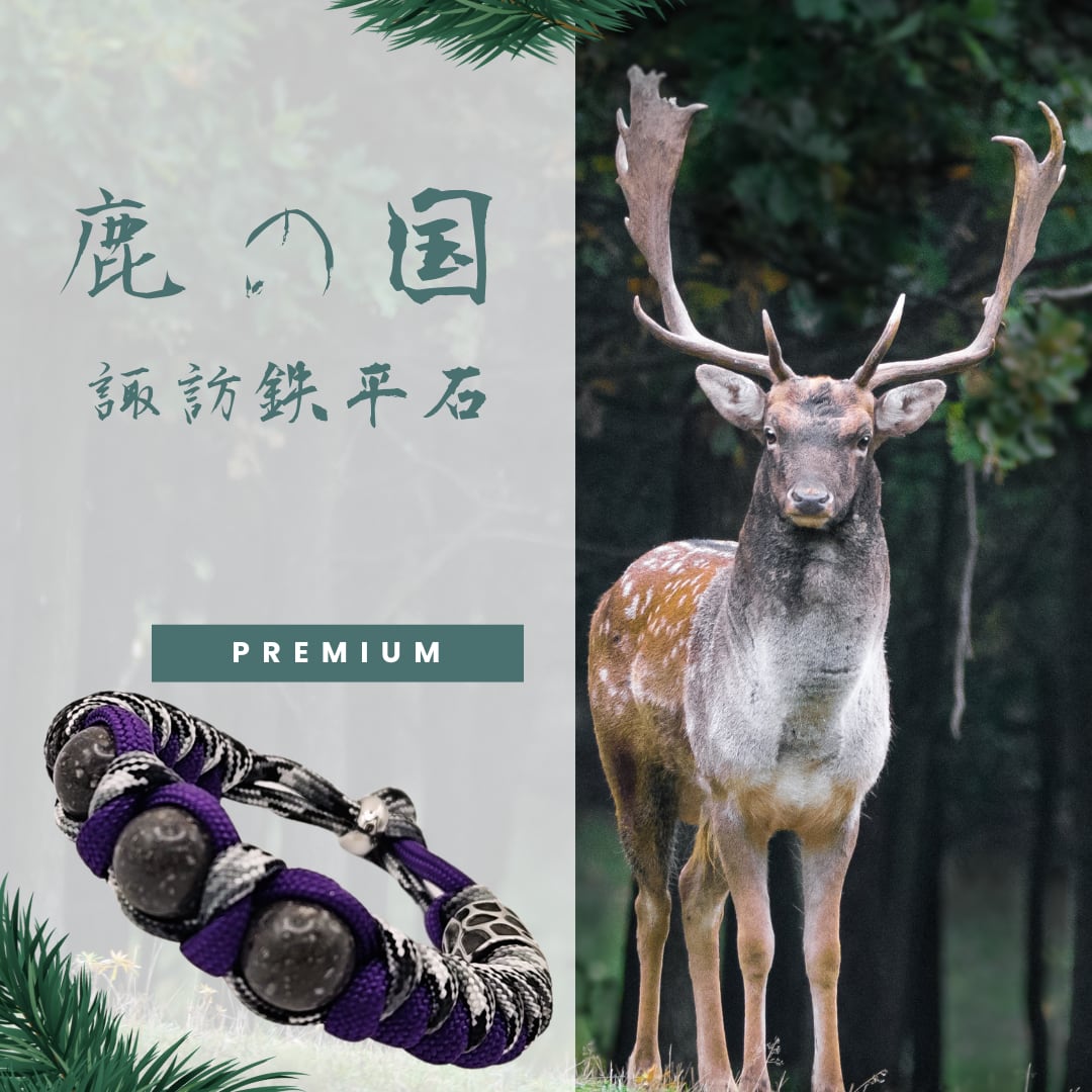 長野・諏訪の大地が悠久の時をかけて育んだ【諏訪鉄平石】を用いた、非常に希少で神聖なブレスレットです。諏訪大社は古来より鹿を神の使いとして祀る特別な聖域であり、この石はその大地の記憶を宿しています。力強さと清らかさを兼ね備えたデザインは、神道の信仰や神社参拝のお供としてふさわしく、身につける人の心身を守護する格式高い御守りとなるでしょう。