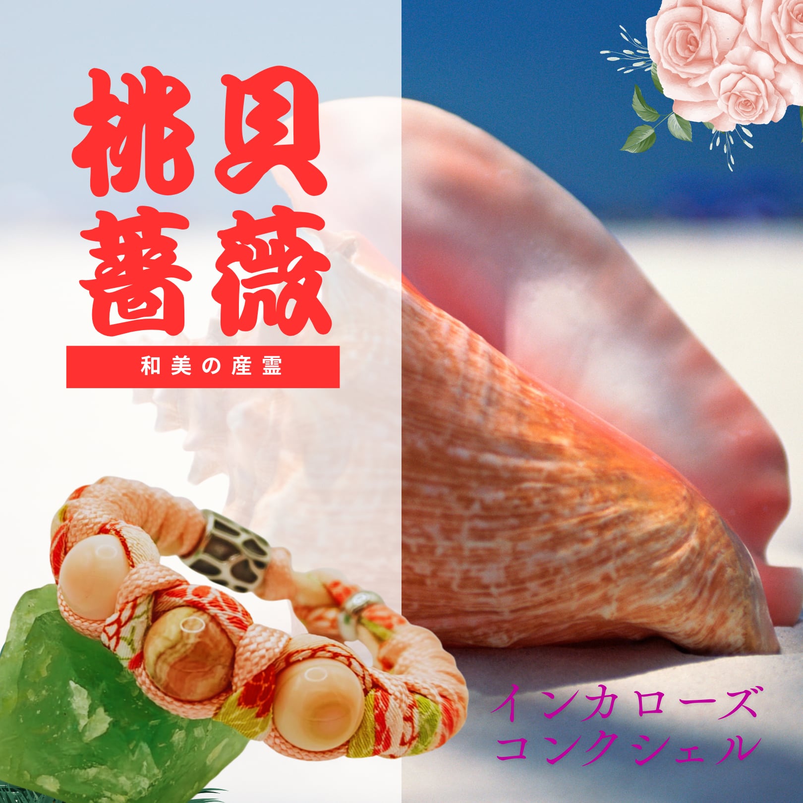 和美の産霊(わびのむすひ)ブレスレット|インカローズ12mm&クイーンコンクシェル12mm・愛と調和の女神守護石|おりおんショップ