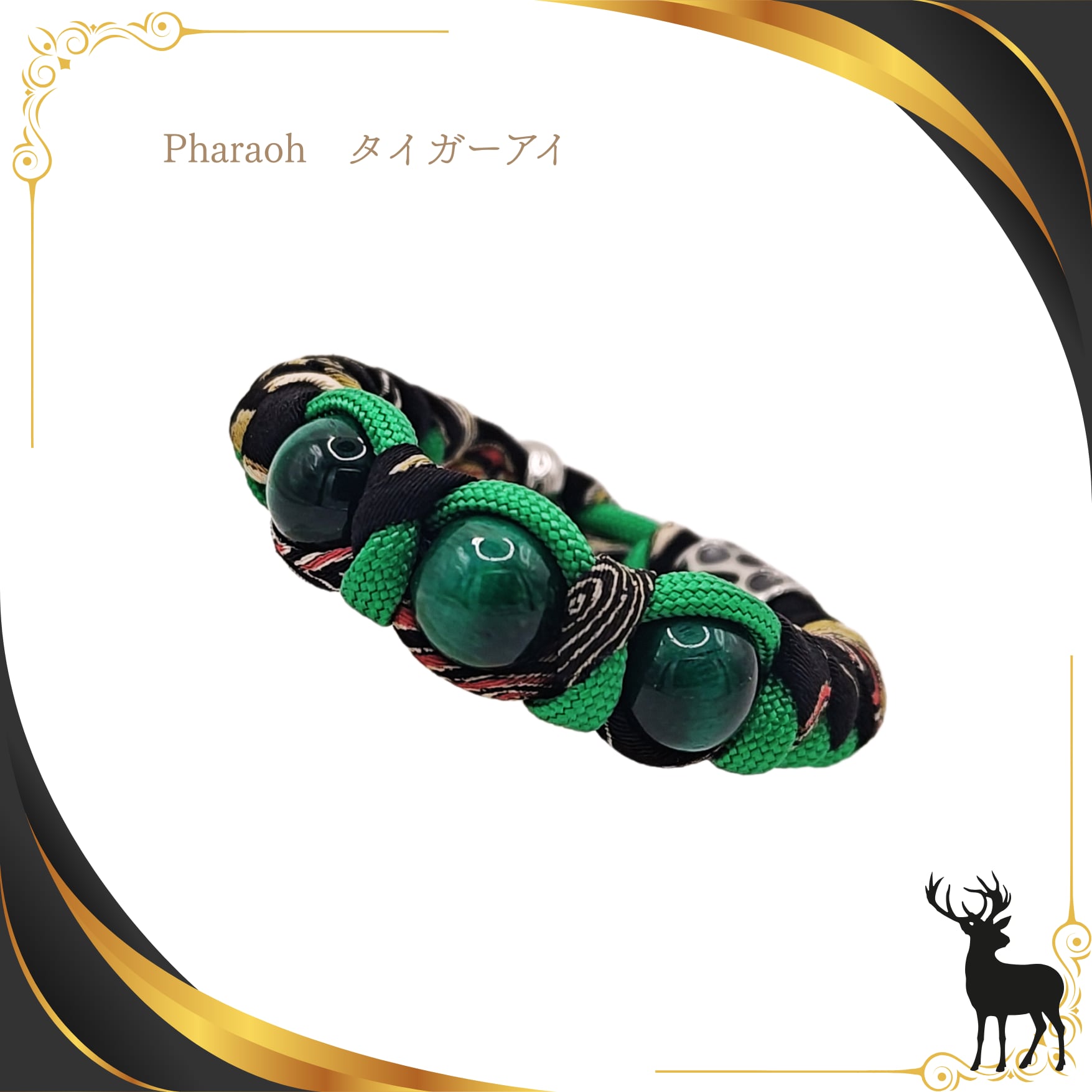 ③ グリーンタイガーアイ × 和柄 × 緑パラコード