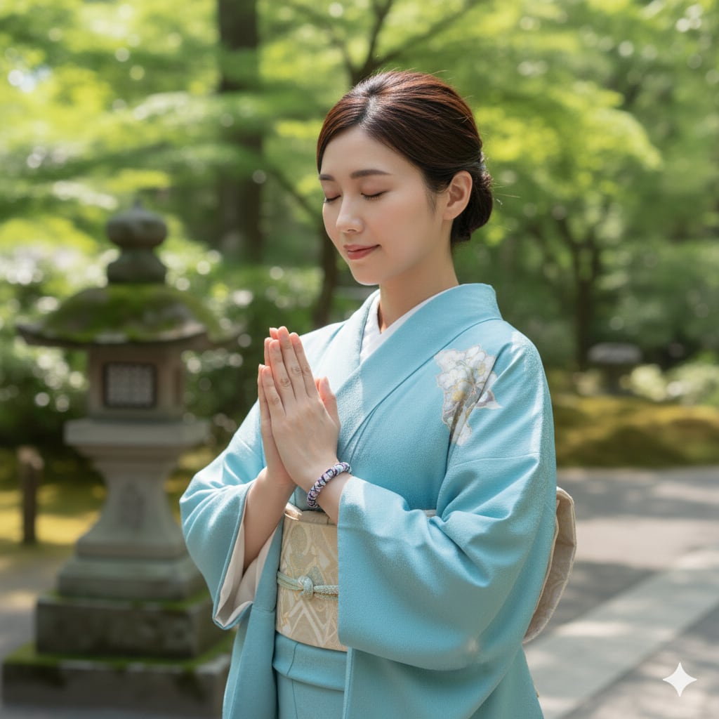 菊理姫命|ブルーレースアゲート10ミリ玉と和柄紐の結びブレスレット