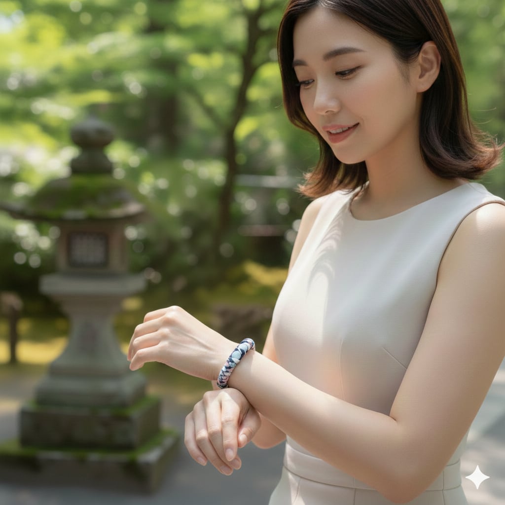 10ミリ玉の存在感がありながら、 女性の手首に優しく馴染む 和洋折衷のデザインです。