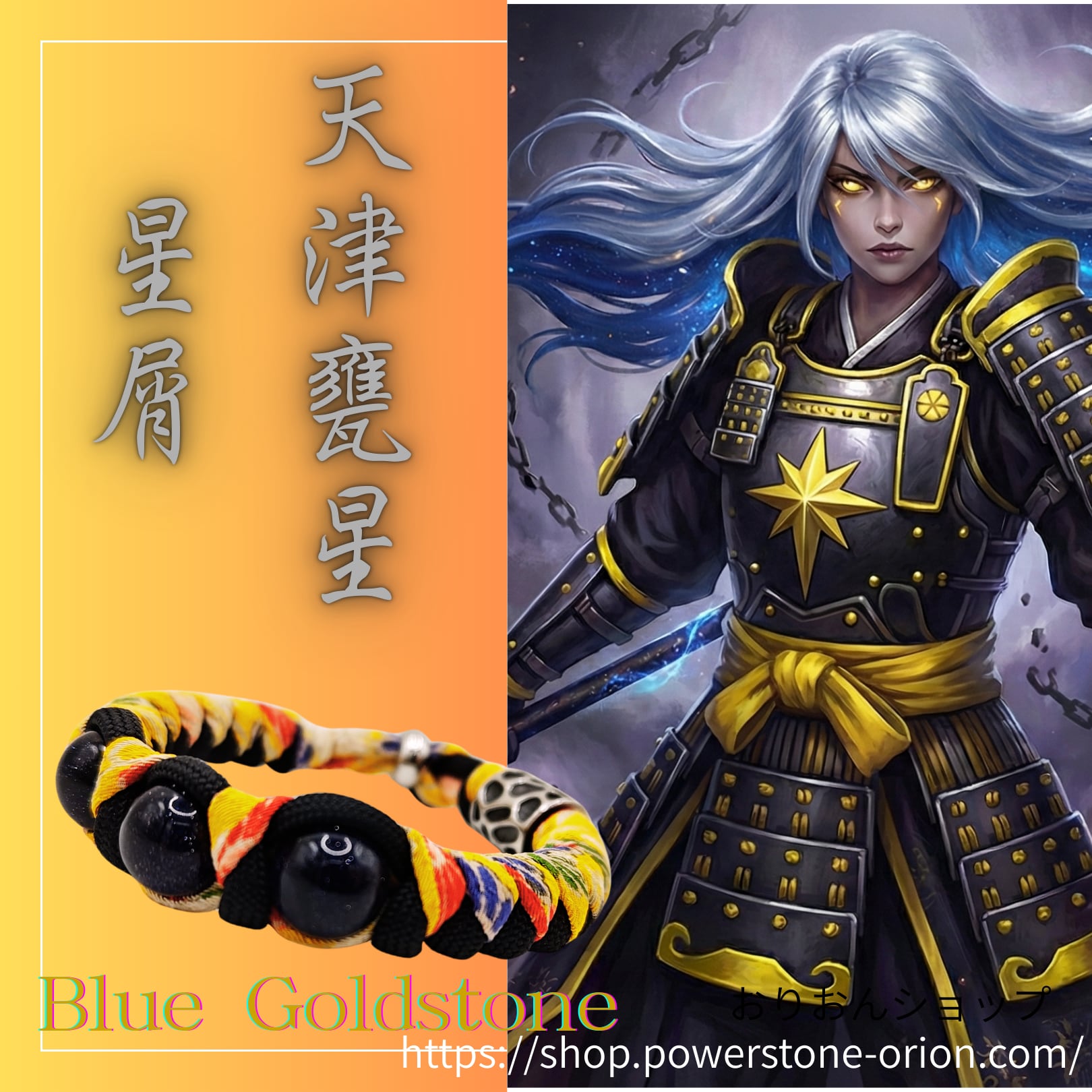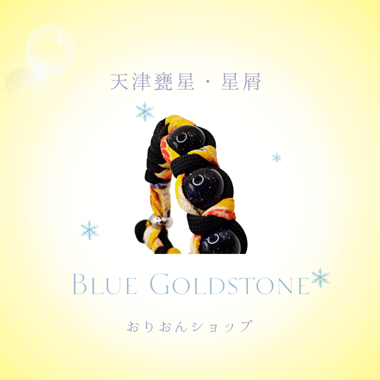【天津甕星・星屑】ブルーゴールドストーン12ミリ和柄ブレスレット