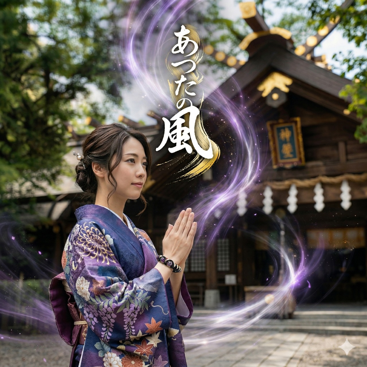 上品さと神聖さを感じさせる【紫の和柄紐】を編み込んで仕上げました