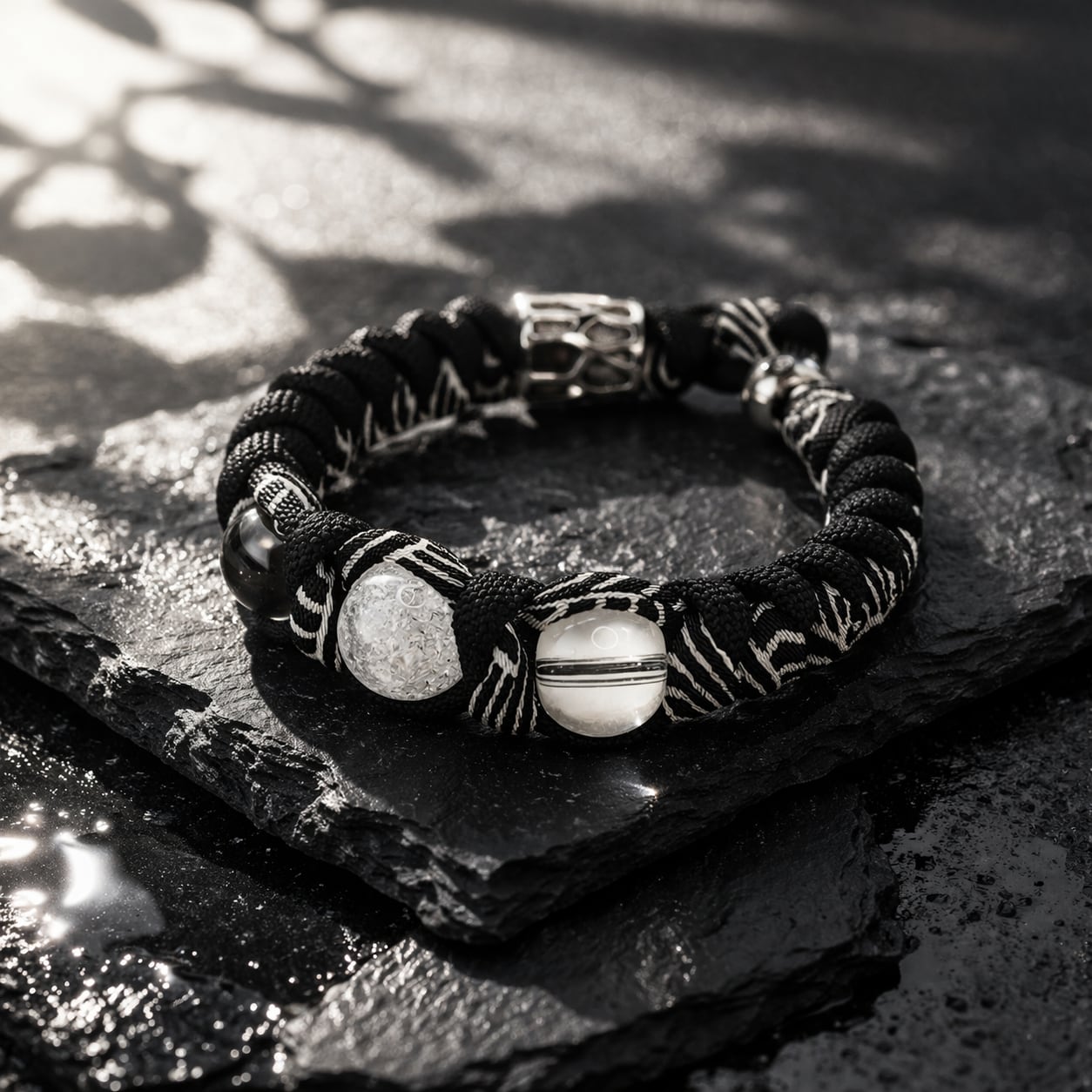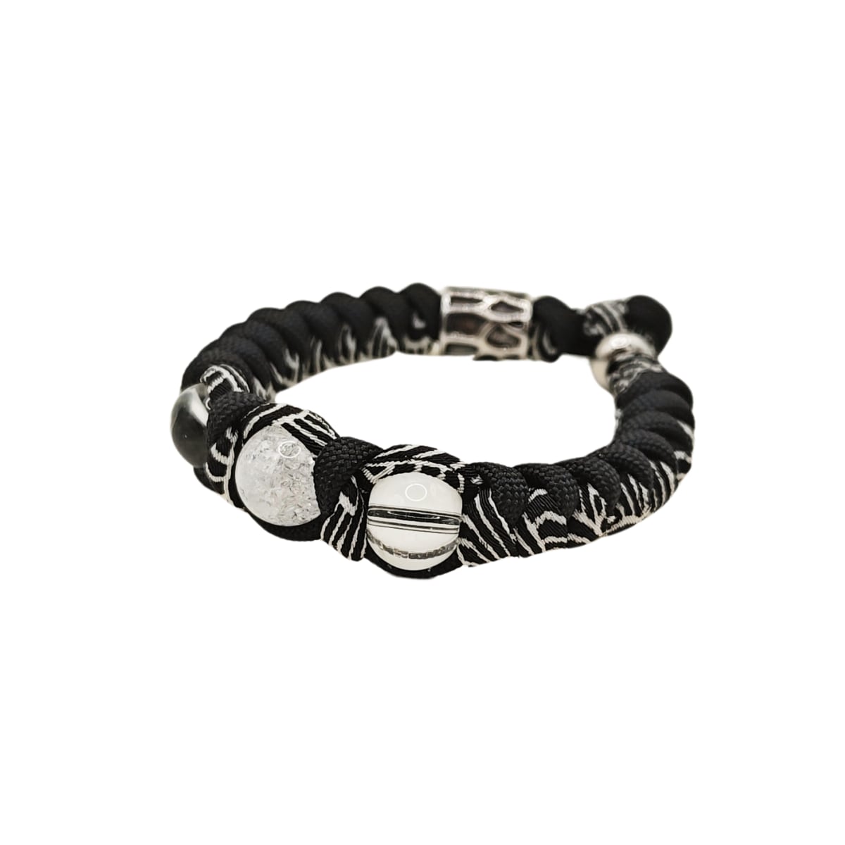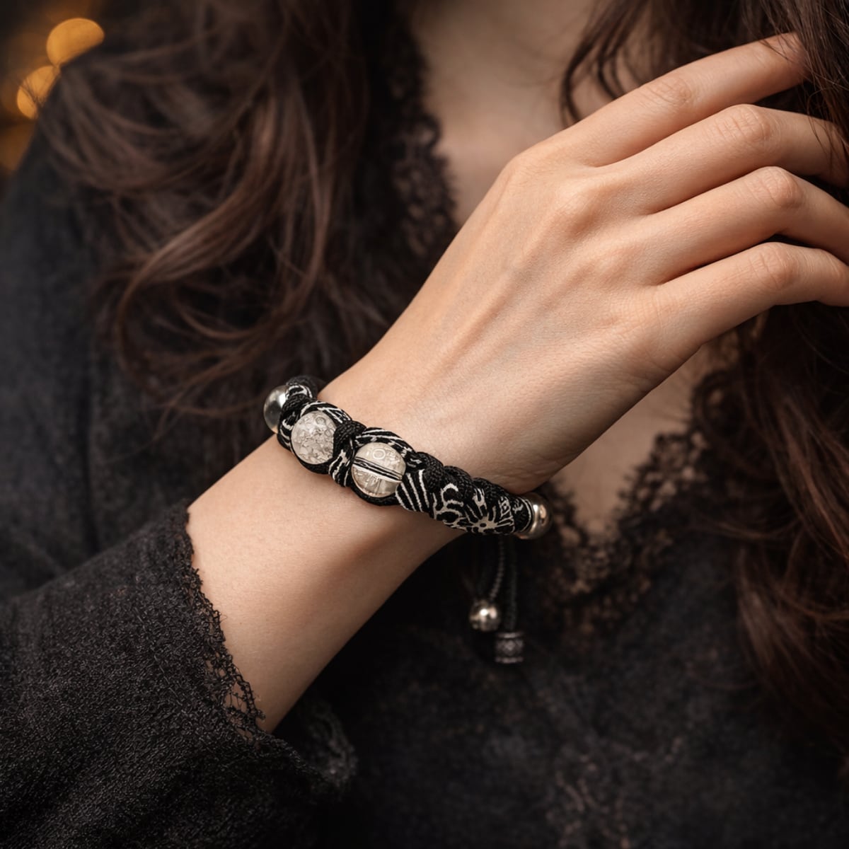 黒玄|こくげん 天然石ブレスレット 水晶 12mm 浄化 お守り 和柄 パラコード