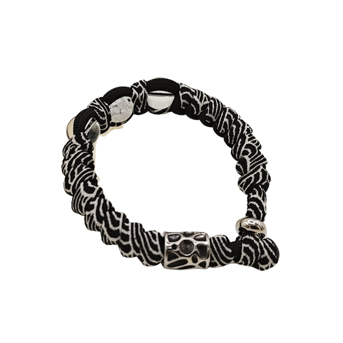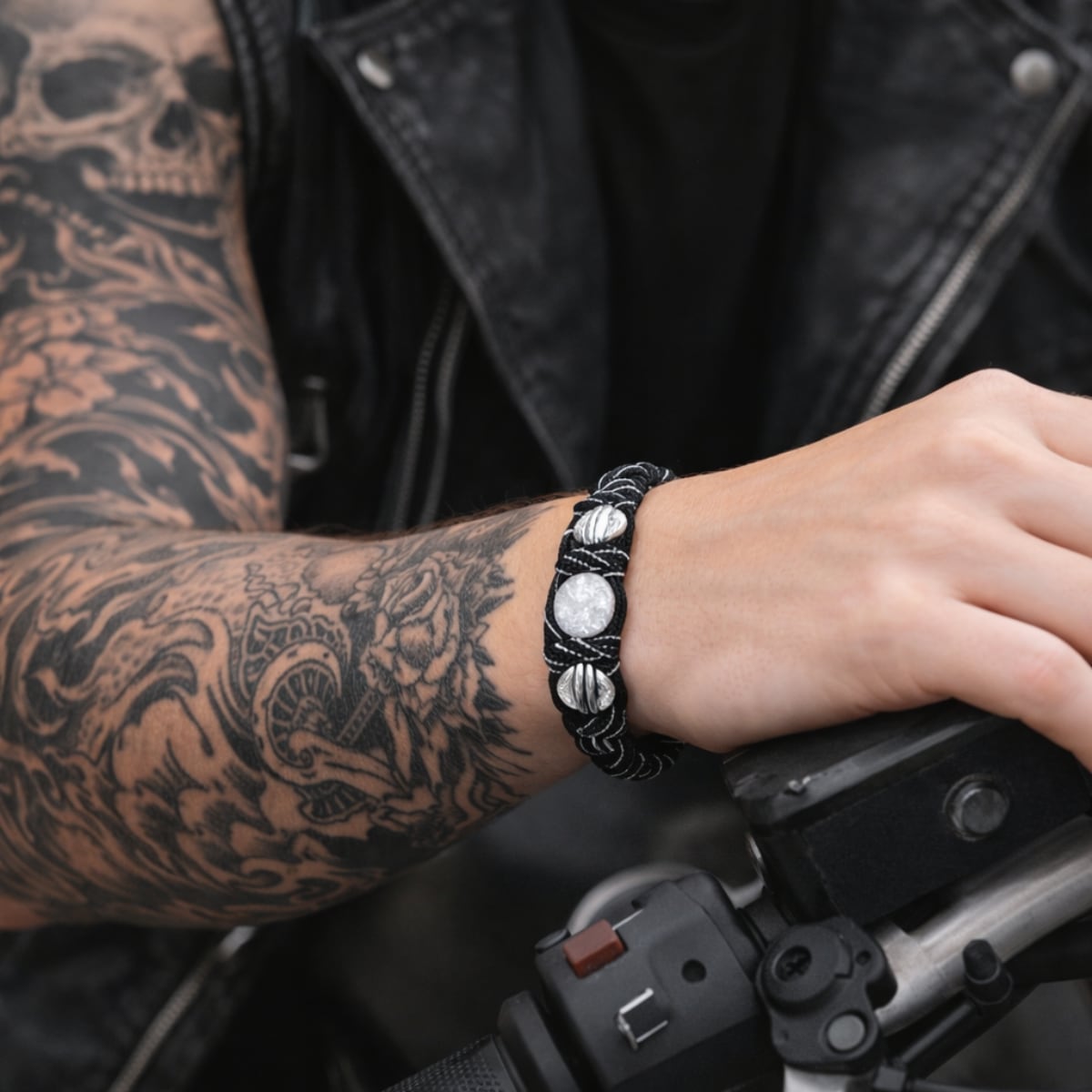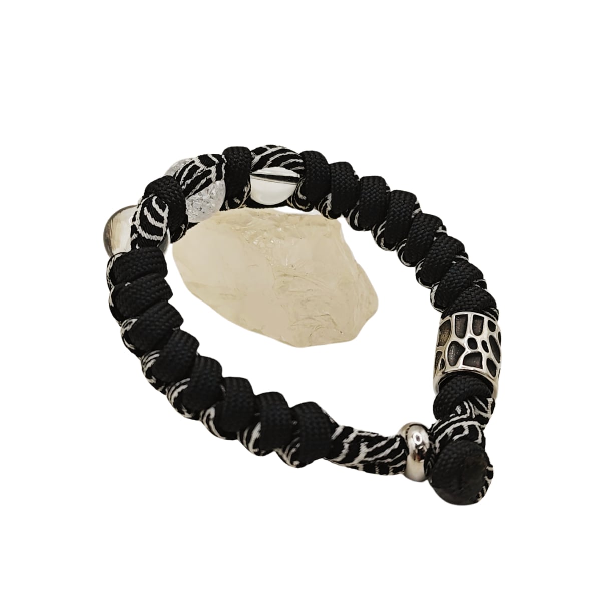 黒玄|こくげん 天然石ブレスレット 水晶 12mm 浄化 お守り 和柄 パラコード